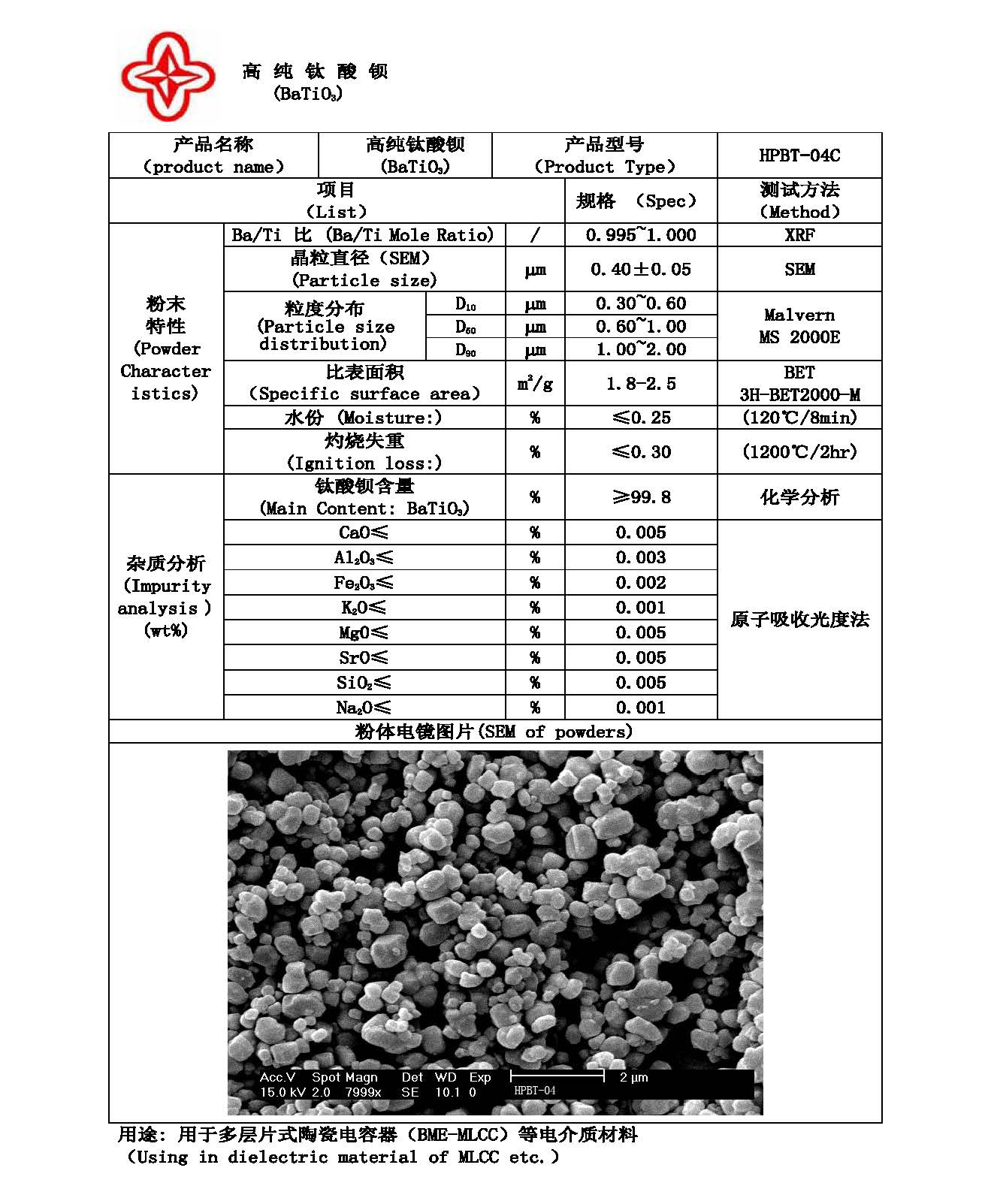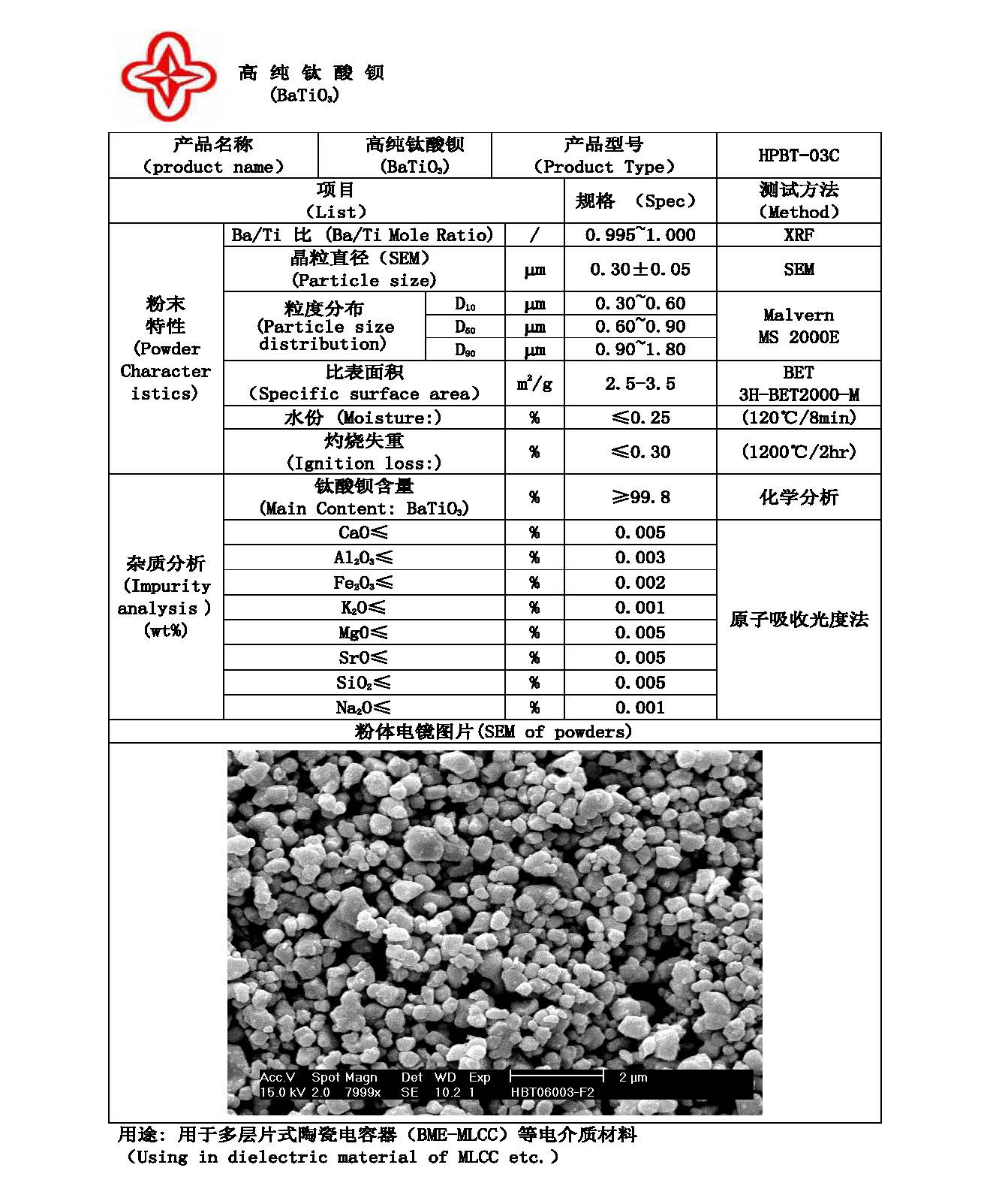 高纯电子级钛酸钡